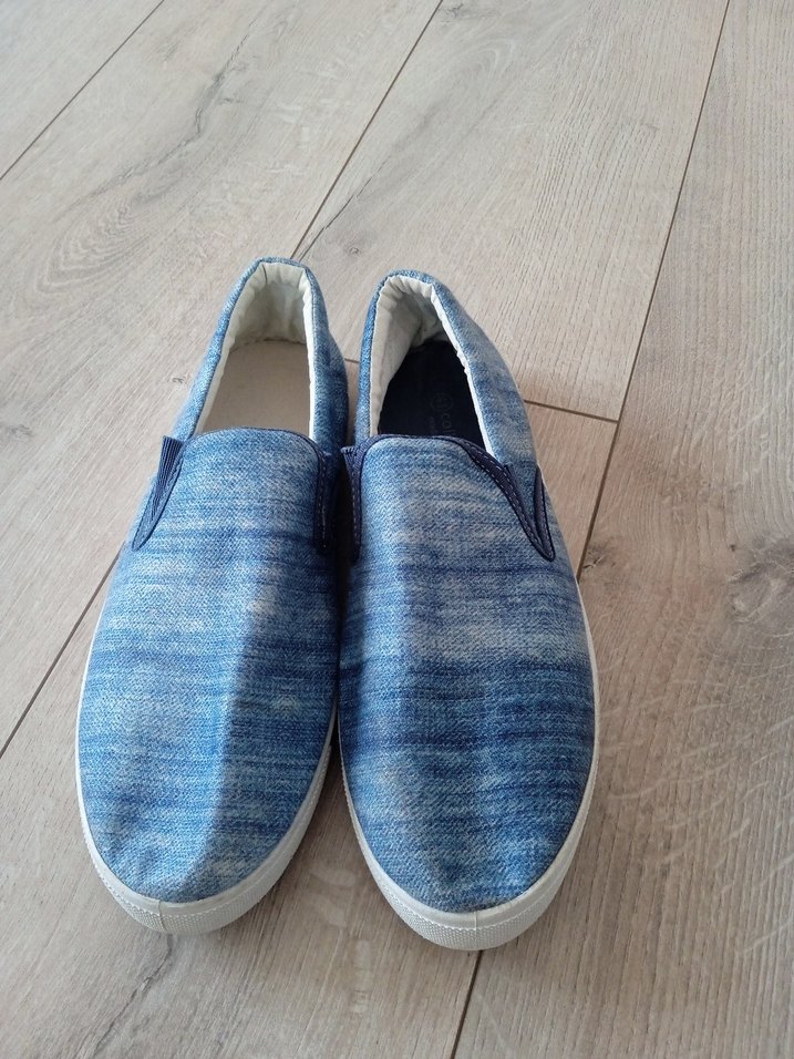 Erkekler için mavi denim espadril ayakkabı, sade tasarımıyla günlük ve sokak stiline uygun, zahmetsiz şıklık sunar numara 41