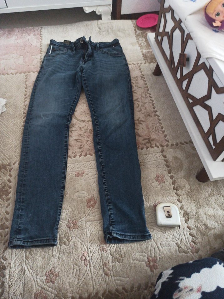 Mavi denimden üretilmiş, bol kesim ve tokalı erkek jean. Normcore tarzı, günlük kullanıma uygun midi uzunlukta ve desensiz model.