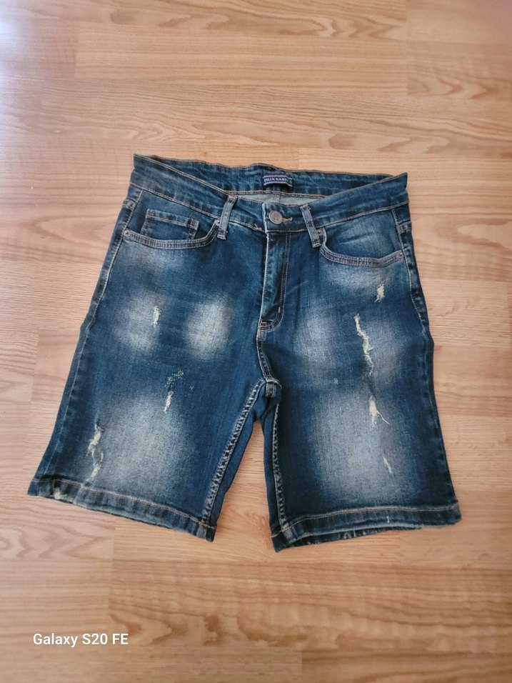Bu mavi denim şortlar, rahat kesimi ve hafif aşınmış görünümüyle gündelik sokak tarzı için uygun, zahmetsiz şıklık sunar.