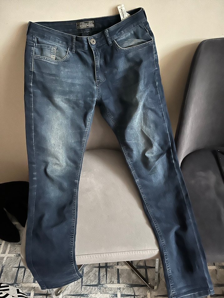 Erkek Mavi Denim Midi Boy Kot Pantolon