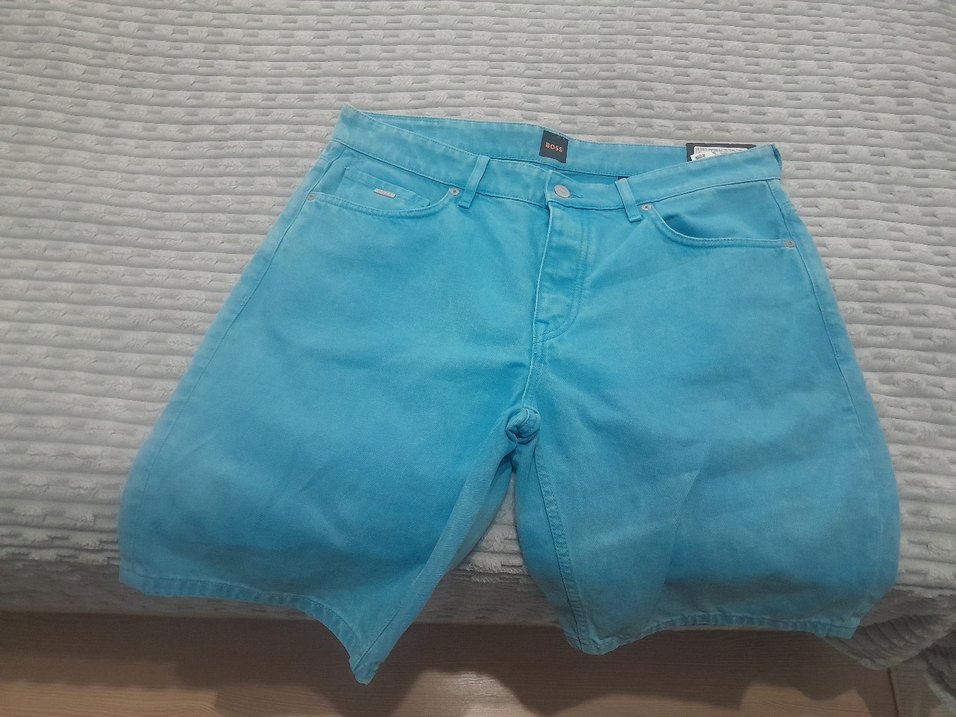 Erkekler için pastel mavi renkte, bol kesim denim mini şort. Günlük kullanıma uygun, sade ve rahat sokak tarzı şıklığı sunar.