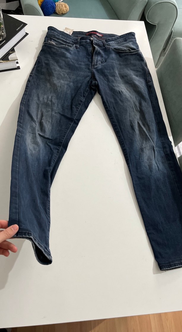 Erkekler için mavi renkte, normal boyda ve rahat kesimde denim kot pantolon. Desensiz ve günlük sokak tarzına uygun bir tasarıma sahiptir.