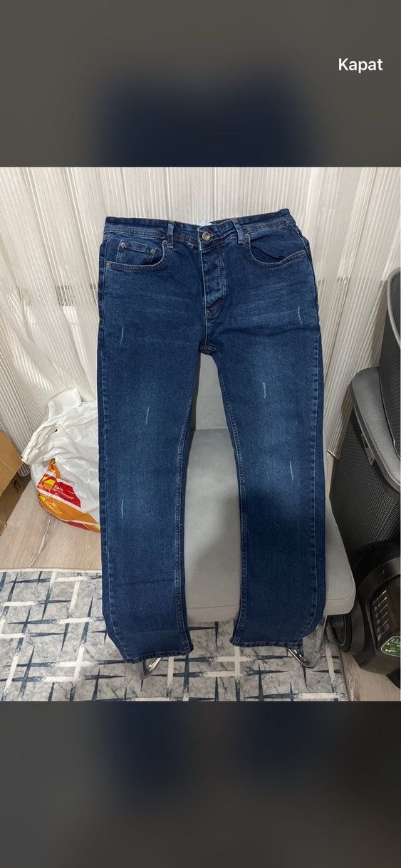 Erkekler için mavi denim, regular fit ve normal boyda, tokalı detaylı jean. Günlük rahat sokak stiline uygun.