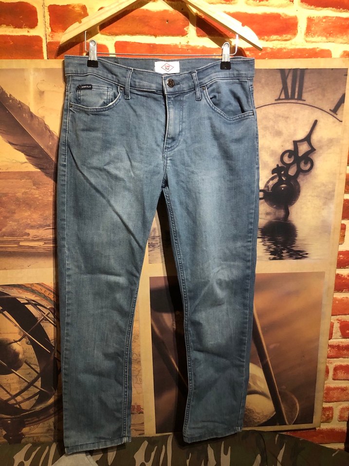 Mavi denim regular fit kot pantolon, tokalı detaylı, günlük sokak stiline uygun. Normal boyda ve desensiz tasarıma sahip.