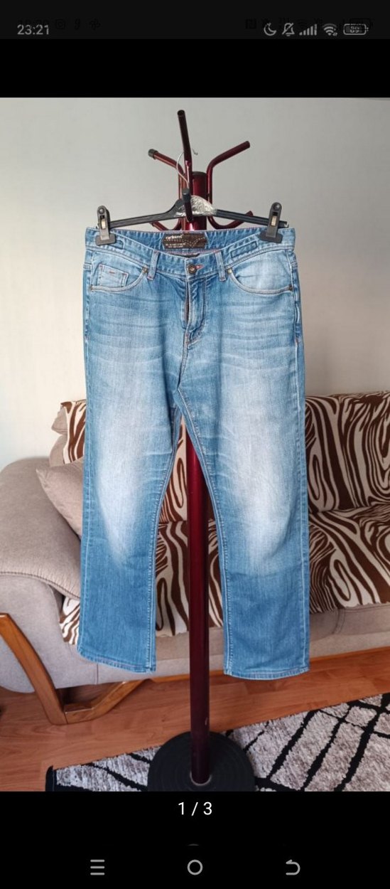 Erkekler için regular fit mavi ve gri tonlarda hafif batik desenli denim pantolon. Tokalı detay ve normal boyda, günlük rahat kullanım için uygundur.