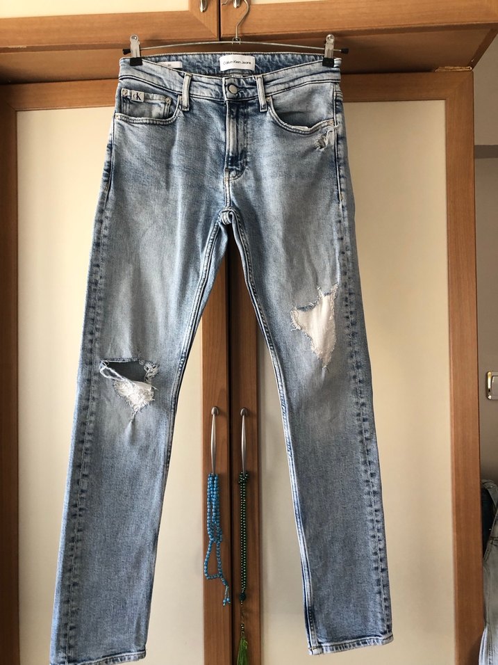 Erkek için mavi denimden yapılmış, normal paçalı ve yırtık detaylı jean. Günlük kullanıma uygun, rahat kesim ve sokak stiline uygun.