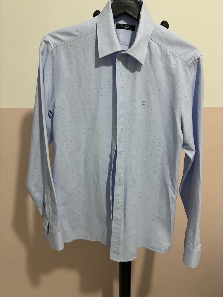 Pierre Cardin marka small beden 36 sayılı giyildi tertemiz yakası sağlam Erkek gömlek, düğmeli ön ve uzun kollu, çıtalı yaka detaylıdır. Pamuklu yumuşak kumaştan, regular fit ve normal boydadır. Mavi renk, ince nokta desenle sokak stilini casual şıklıkla birleştirir.