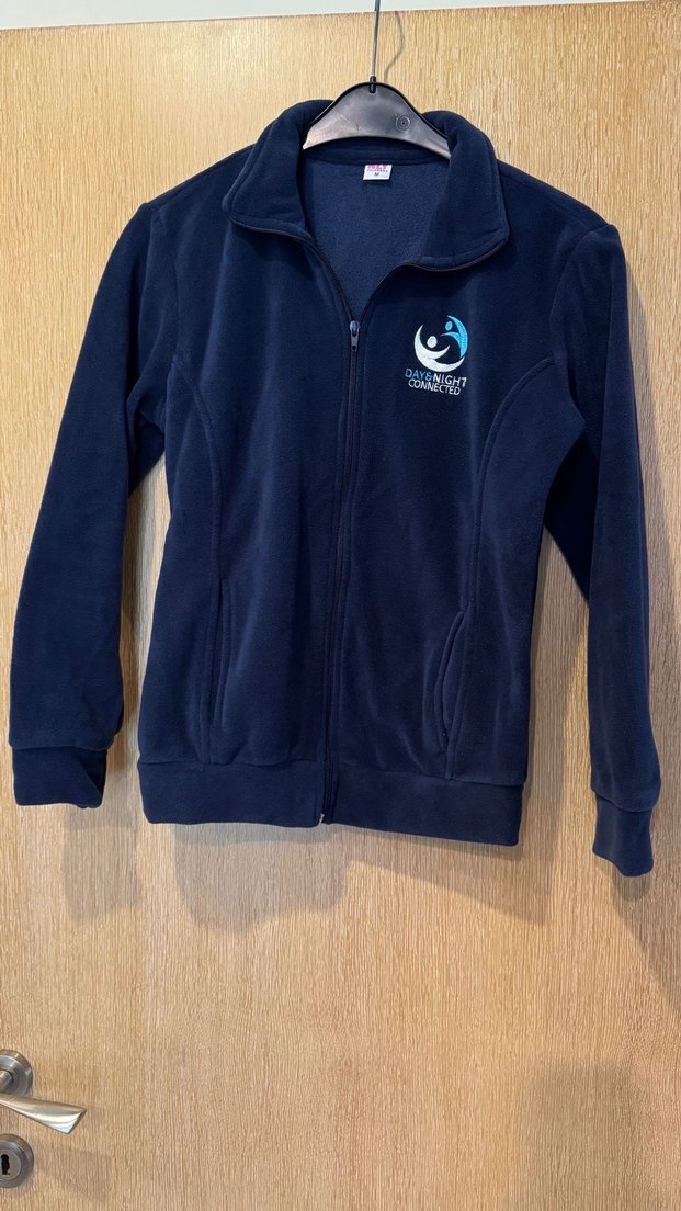 Erkekler için fermuarlı, uzun kollu, mavi renk baskılı logolu fitted polar ceket .Günlük rahat kullanım için uygun. 11-12 yaşa uygun ölçüler görsellerde