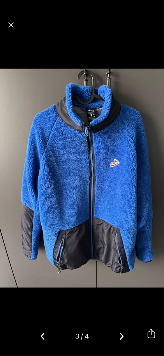 Erkekler için mavi polar sweatshirt, yüksek yaka ve uzun kollu, bol kesim. Fermuarlı cepler ve ön fermuar içerir, rahat ve athleisure tarzda. Günlük kullanım için uygun.