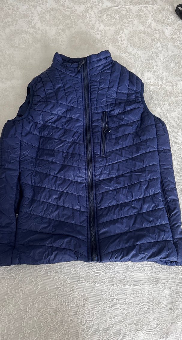 Erkekler için koyu mavi renkte, fermuarlı ön ve cep detaylı, kesimli ve normal boyda yelek. Yumuşak ve sıcak kumaştan yapılmıştır, günlük kullanım için uygundur.