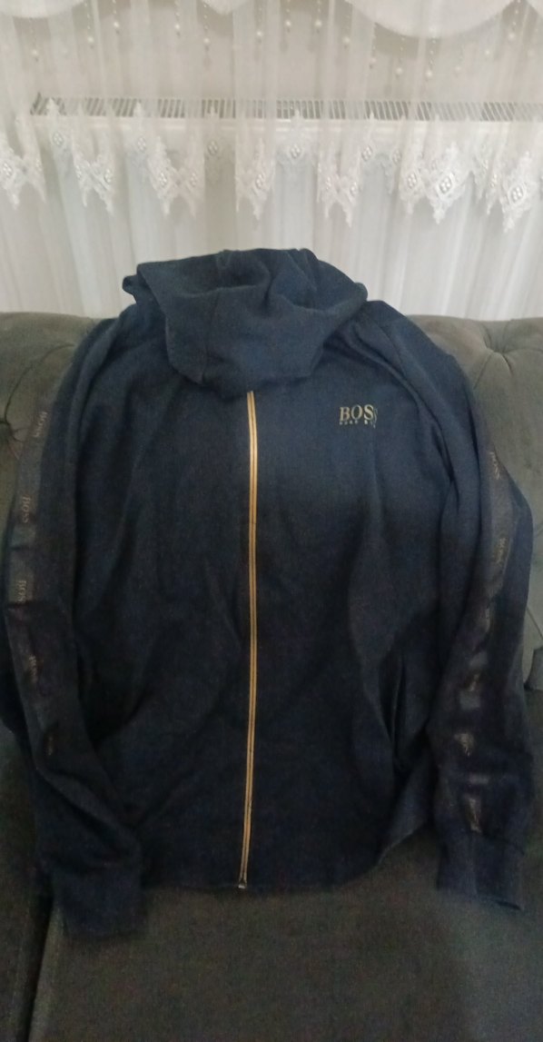 Erkekler için yüksek yakalı, uzun kollu ve fermuarlı bir sweatshirt. Koyu mavi renkte, baskılı kollara ve normal uzunlukta fit kesime sahiptir. Yumuşak ve sıcak kumaştan üretilmiştir. BO:S baskısı göğüste yer alır.