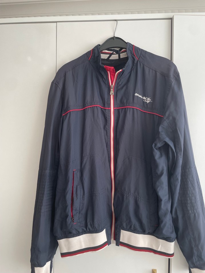 Erkekler için mavi ve gri tonlarda, fermuarlı, uzun kollu, yüksek yakalı, sentetik kumaştan üretilmiş, günlük sokak stili için uygun, normal uzunlukta ve dar kesim yağmurluk. Önünde küçük çıkıntıları var