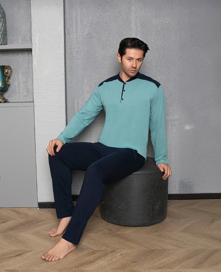 Erkek Mavi Gri Rahat Kesim Pijama Takımı