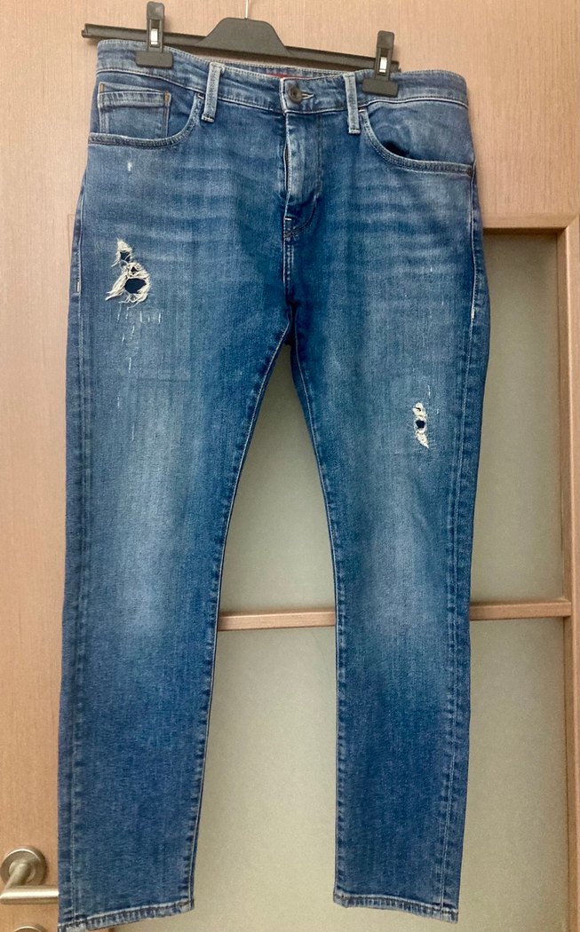 Mavi marka James Skinny model 31/30 beden az kullanılmış ve hafif yırtıklarla casual görünümlü kot pantolon. Günlük kullanıma uygun.
