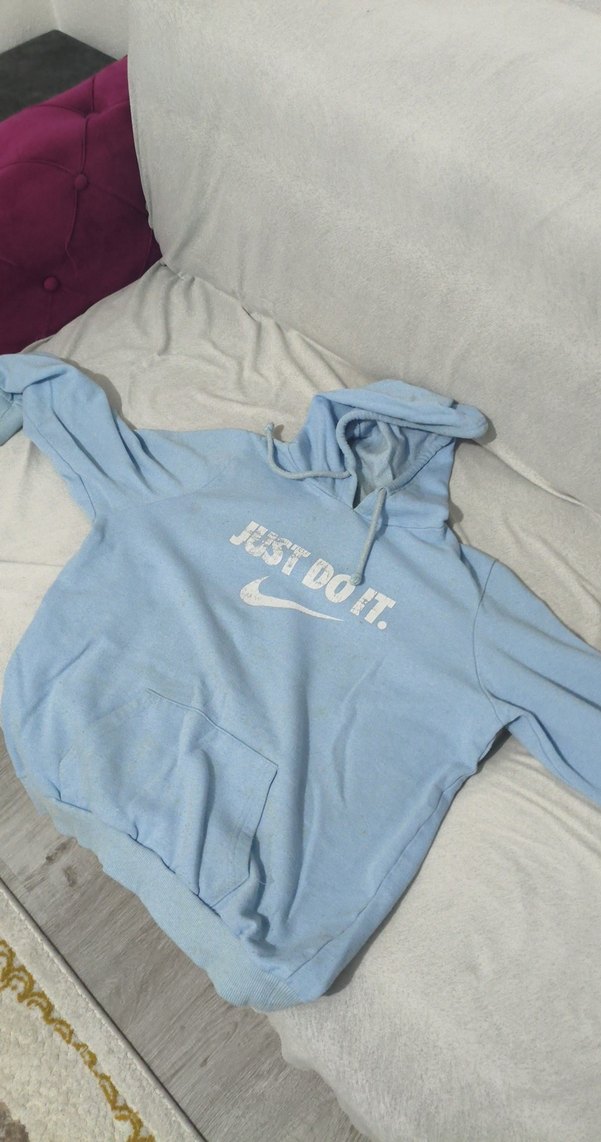 S beden Erkekler için pastel mavi renkte, yumuşak kumaştan, kapüşonlu ve uzun kollu bol kesim sweatshirt. Önünde 'JUST DO IT.' yazısı ve cep bulunur. Spor ve rahat tarz için ideal. ♂️