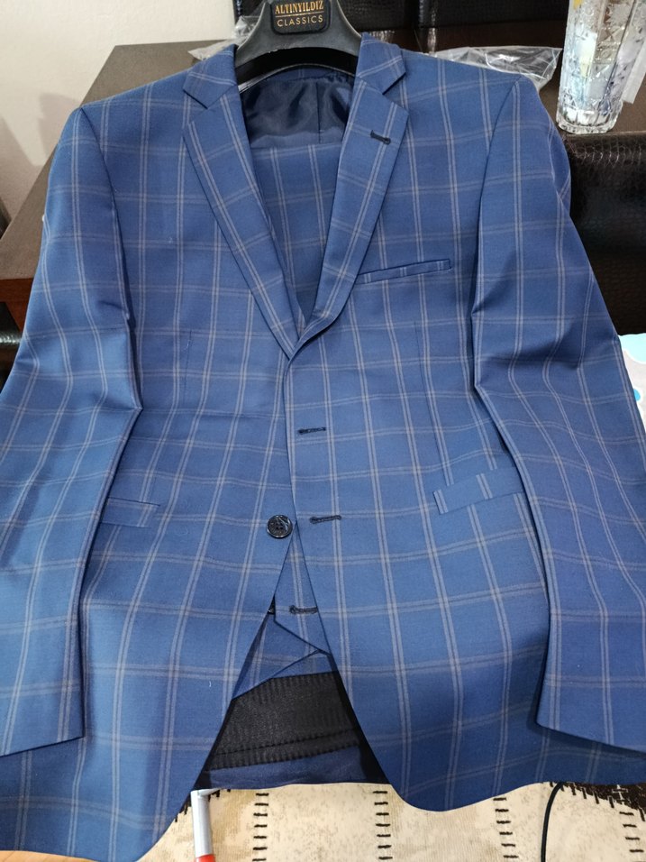 Erkek Mavi Kareli Düğmeli Takım Elbise