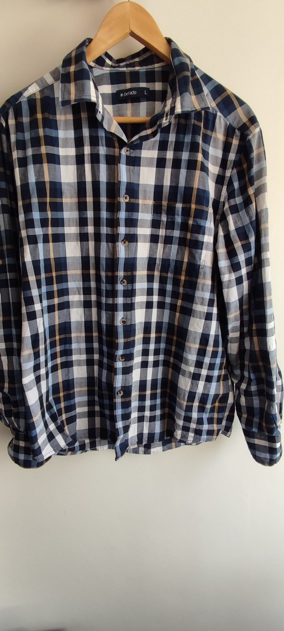 Erkekler için düğmeli, yakalı ve uzun kollu pamuk gömlek. Mavi kareli deseni, rahat ve bol kesimiyle günlük sokak stiline uygun.