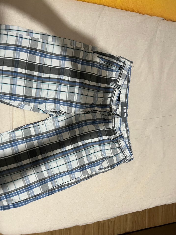 Erkek Mavi Kareli Pamuklu Geniş Kesim Kapri