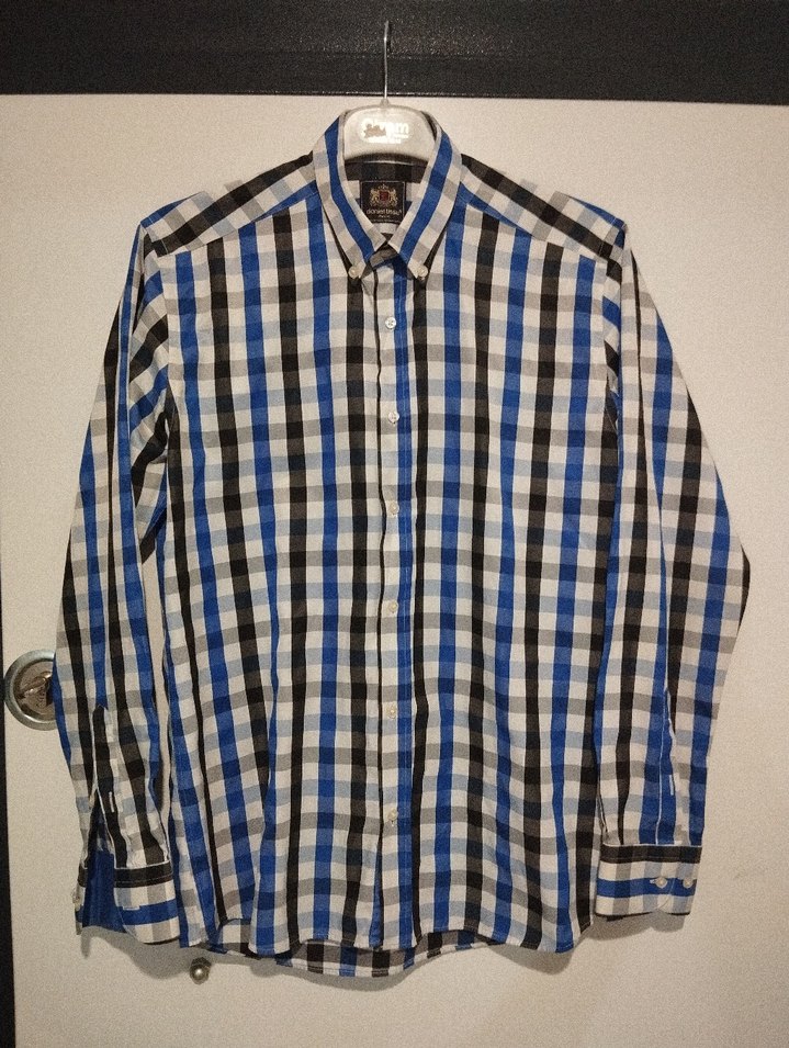 Erkekler için uzun kollu, yakalı ve düğmeli mavi-siyah kareli gömlek. Regular fit, sentetik kumaş ve günlük rahat stil için uygundur.