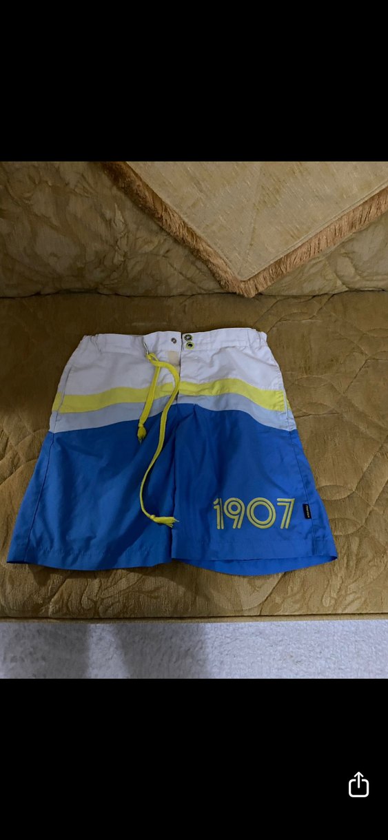 Fenerium 13.14 yaş şort Erkekler için kısa kesim, bağcıklı ve fitted deniz şortu. Açık mavi ve beyaz tie-dye deseniyle, bacakta '1907' baskılıdır. Beach ve streetwear tarzına uygundur.
