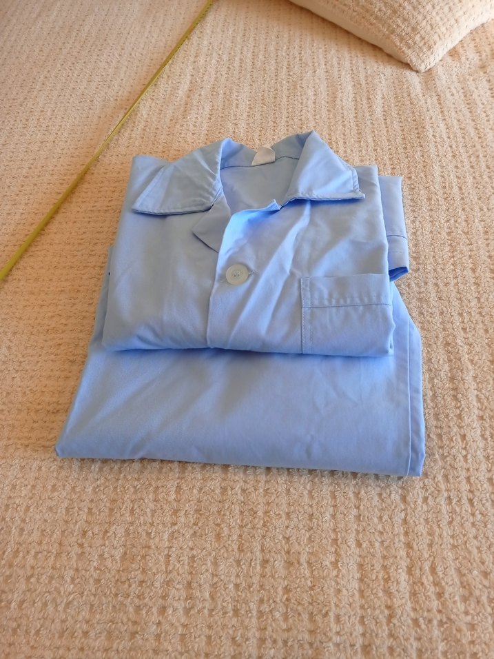 Mavi renkte, kısa kollu ve yakalı, butonlu erkek pijama takımı. Rahat kesimi ve midi boy pantolonu ile gündelik kullanım için uygundur.