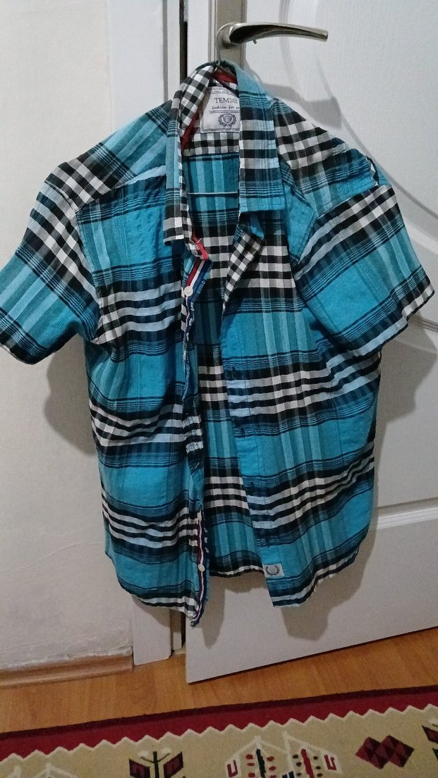 Erkek Mavi Kısa Kollu Düğmeli Gömlek