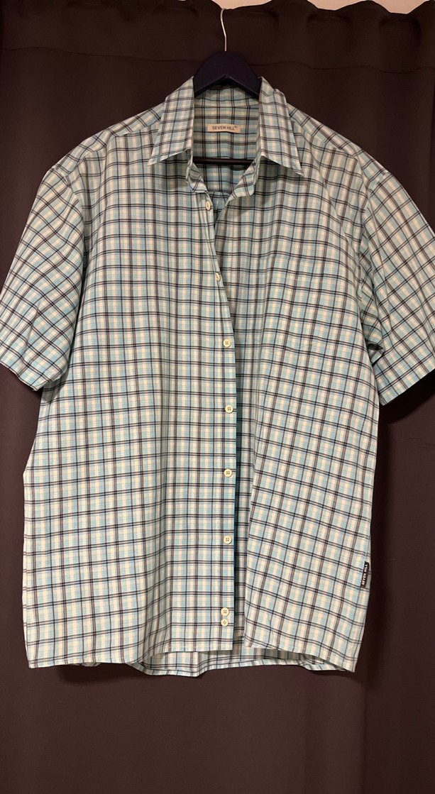 Erkek gömlek, yakalı ve düğmeli tasarıma sahip, yumuşak pamuk kumaştan üretilmiştir. Kısa kollu, bol kesim ve normal boydadır. Mavi bej ve gri tonlarında hafif kareli deseni vardır.