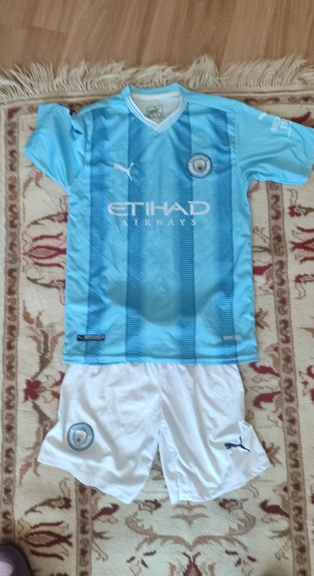 Erkek Mavi Kısa Kollu Street Wear Forma Manchester City
