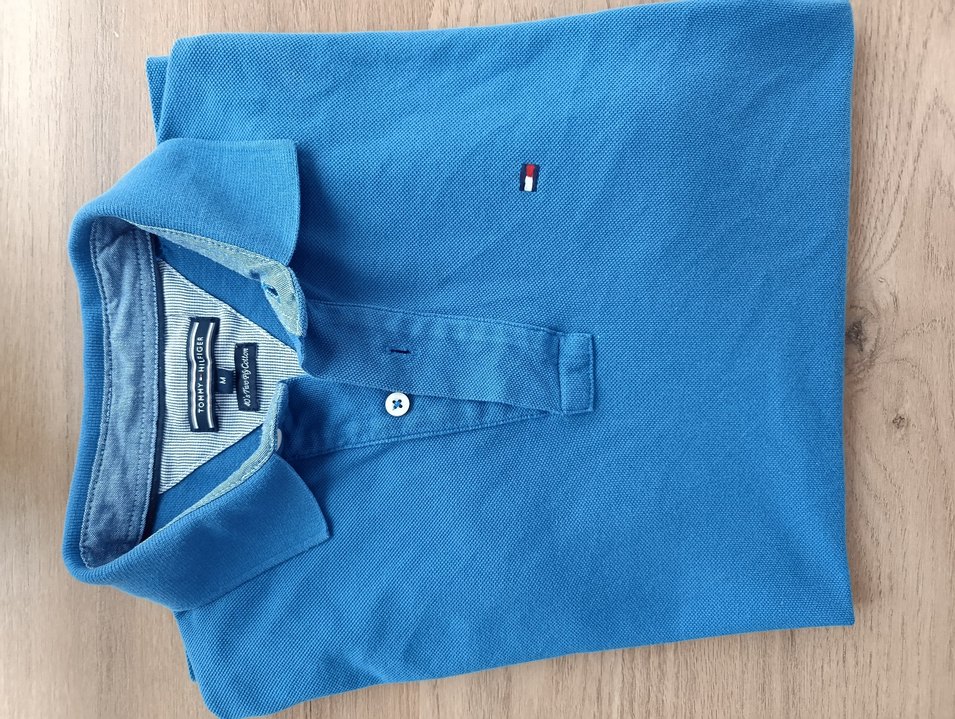 Erkekler için kısa kollu, düğmeli yakalı, pamuklu regular fit mavi tommy tişört. Rahat ve günlük sokak stiline uygun.