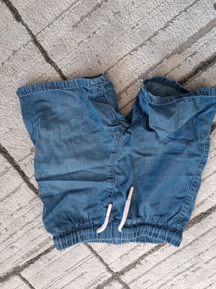 Erkekler için bol kesim mavi kot şort, düğmeli ve lastikli bel detaylarıyla sade ve rahat sokak giyimi için ideal.