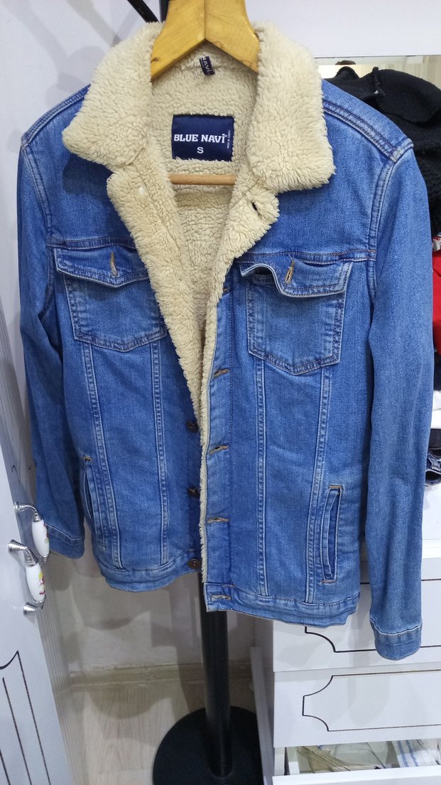 Erkek Mavi Kürklü Denim Ceket