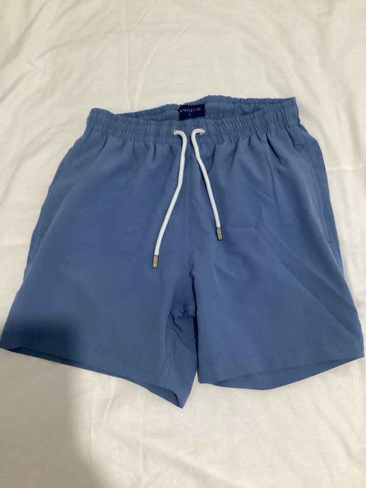 Pastel mavi renkte, lastikli bel ve beyaz bağcık detaylı, rahat kesim erkek mayo şortu. Plaj ve sokak stili için uygundur. 32 cm bel 40 cm boy