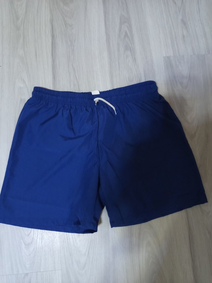 Mavi renkte, lastikli bel ve bağcıklı, rahat kesim erkek mini şort mayo. Plajda kullanıma uygun, sade ve şık tasarım.