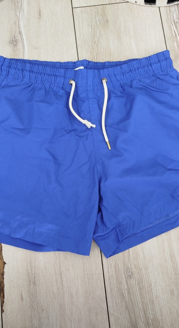 Lastikli bel ve bağcıklı, rahat kesim erkek mavi mini yüzme şortu, plaj için sade ve renkli tarzda.BİR KEZ GİYİLDİ TERTEMİZZZZZ