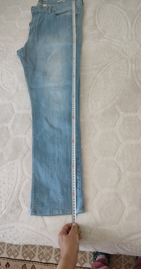 erkekler için mavi denim pantolon, normal kesim ve esnek bel özelliği ile midi boyda, desen içermeyen rahat bir tasarıma sahiptir. çok temiz kullanılmıştır hiç bir kusuru yoktur