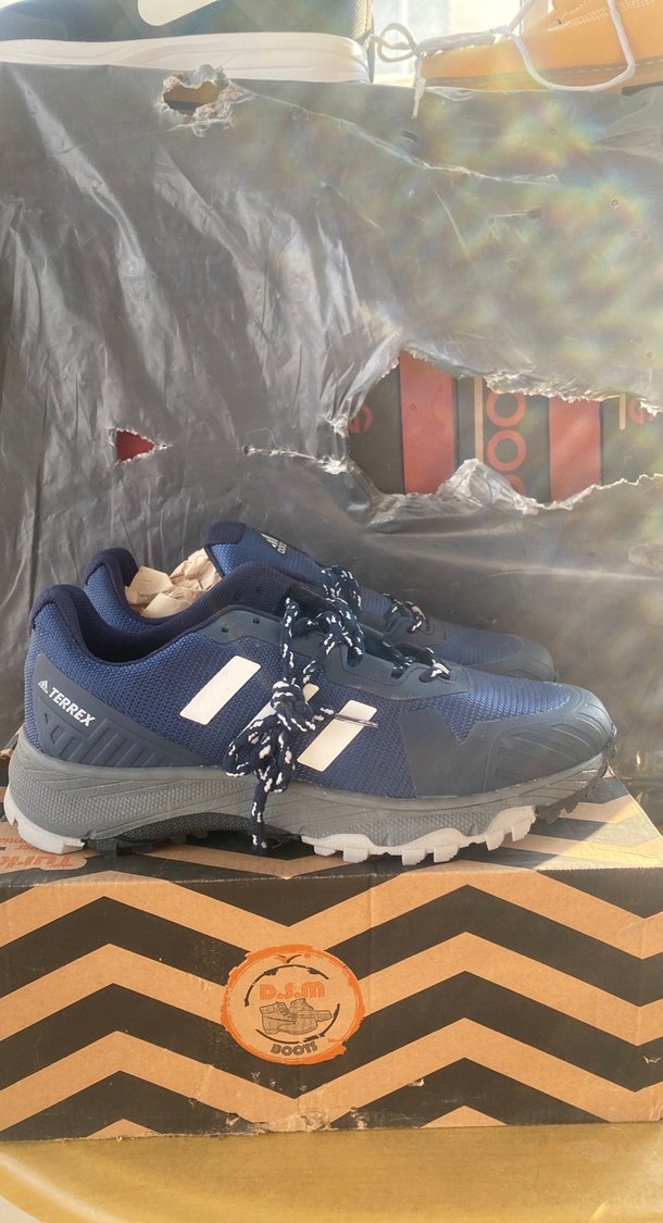 Erkekler için mavi ve gri renklerde, baskılı desenli outdoor spor ayakkabısı. Bağcıklı ve kauçuk tabanlıdır, spor ve sokak tarzına uygundur. ♂️