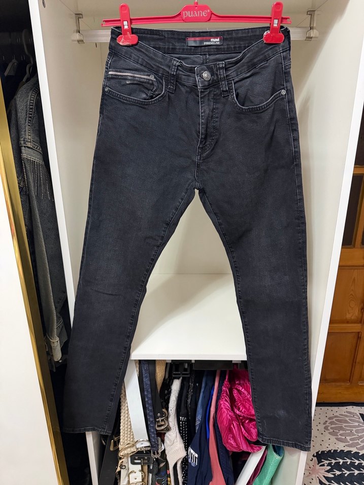fermuarlı detaylara sahip erkek denim jean. Normal boyda, desen içermeyen ve günlük kullanıma uygun rahat bir model.