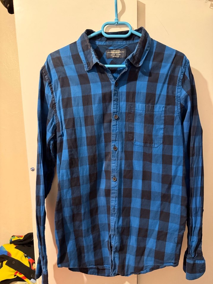 Erkek Mavi Pull&Bear Kareli Denim Gömlek M beden