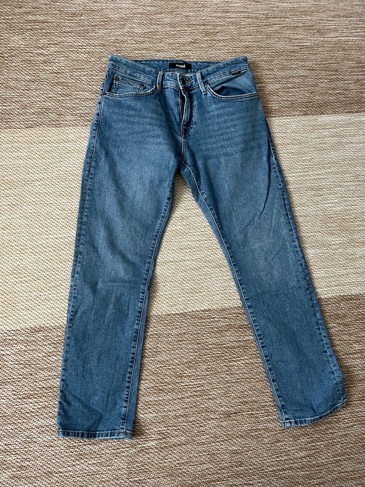 Pantolon sıfırdır tek etiketi yok bedeni bana olmadığı için satıyorum. Bu erkek mavi denim jean, regular fit ve normal boydadır. Günlük kullanıma uygun, sade ve rahat bir stil sunar.