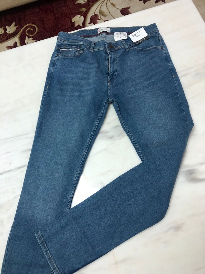Erkekler için mavi denimden üretilmiş, regular fit ve kemerli kot pantolon. Günlük kullanım için uygun, normal boyda ve sokak stiline uygun.