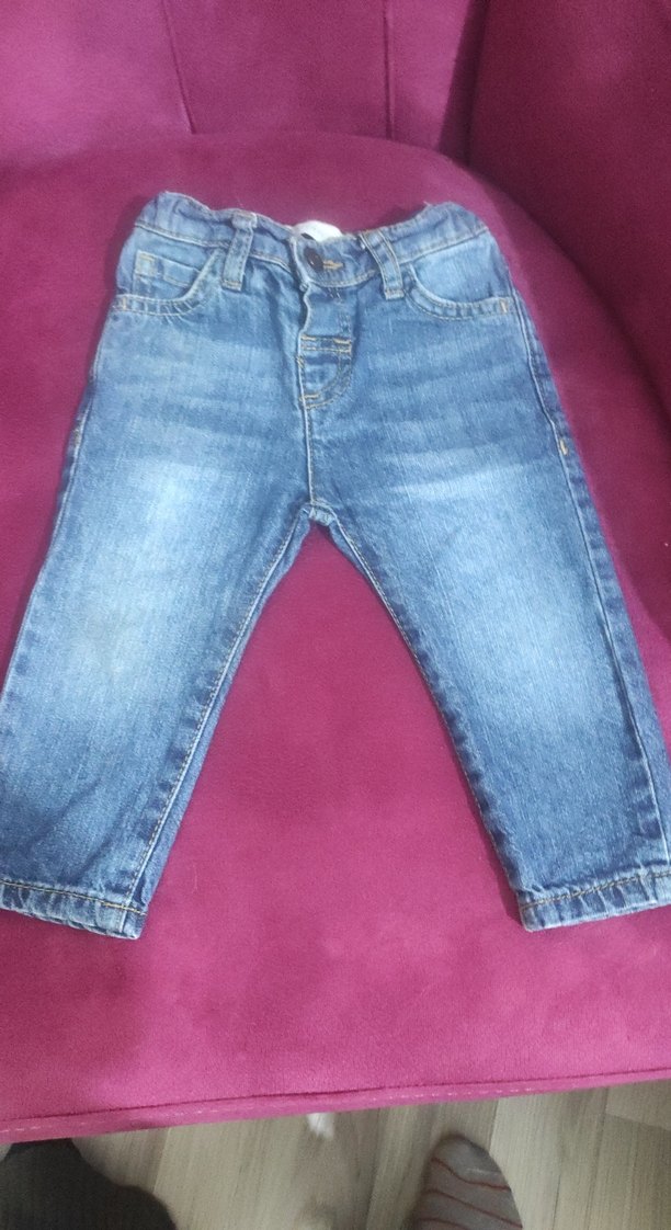 Erkek çocuk için düğmeli, regular fit kot pantolon. Canlı mavi renkte ve desensiz, trendi gündelik tarzda.