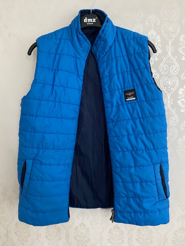 Kapitone desenli, fermuarlı cepleri ve çıtmalı yaka detayı olan mavi erkek yelek. Rahat kesimli, yumuşak dokulu kumaştan, günlük kullanım için uygun.