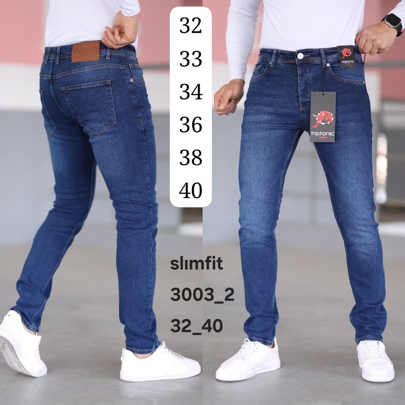 Erkekler için slim fit kesim, mavi renkli denim jean pantolon. Günlük kullanıma uygun, rahat ve desen içermeyen tasarım. 32-40 beden arası mevcut.