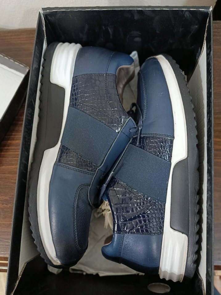 Koyu mavi renkli, kemerli tasarıma sahip deri erkek spor ayakkabı en fazla 1.hafta girilmiştir resimlerde görüldüğü gibi sifir ayarında
