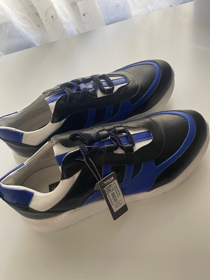 Bu erkek spor ayakkabıları koyu mavi renk, baskılı detaylar ve kemerli tasarıma sahiptir. Kauçuk tabanlı olup sokak stili ve athleisure rahatlığını birleştirir. Spor ve günlük kullanıma uygundur.