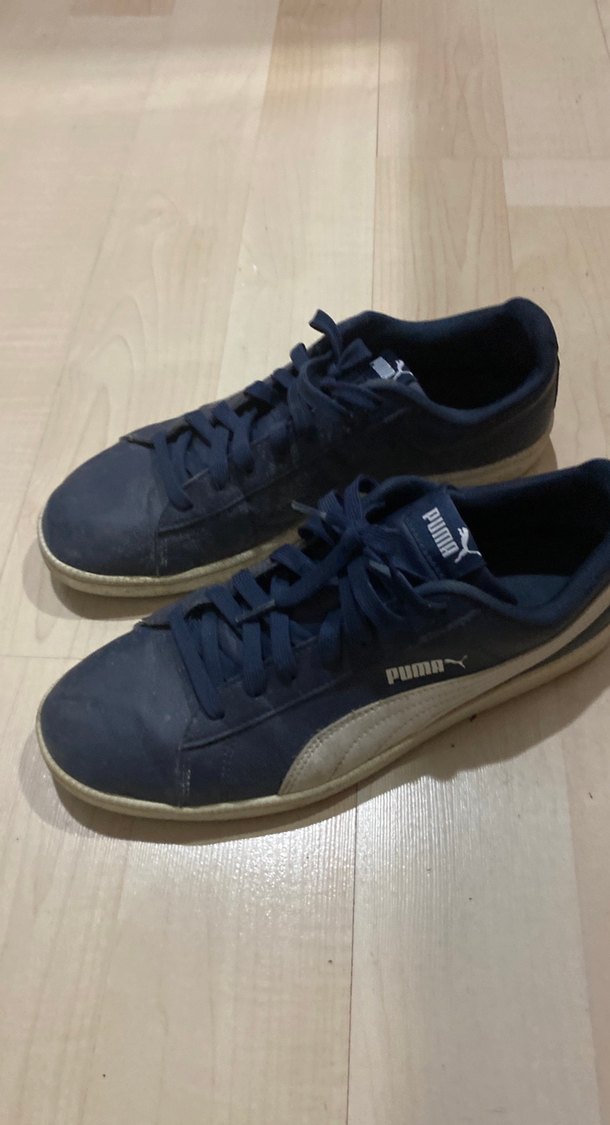 Koyu mavi erkek spor ayakkabısı, düz taban ve velcro özellikli. Kauçuk malzeme, sportif ve günlük sokak stiline uygun. Rahat kullanım sağlar.
