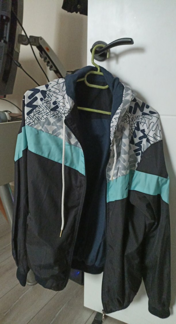 Erkekler için bol kesim, yüksek yakalı, uzun kollu ve fermuarlı mavi spor rüzgarlık. Günlük kullanıma uygun, sentetik kumaştan üretilmiştir. ️