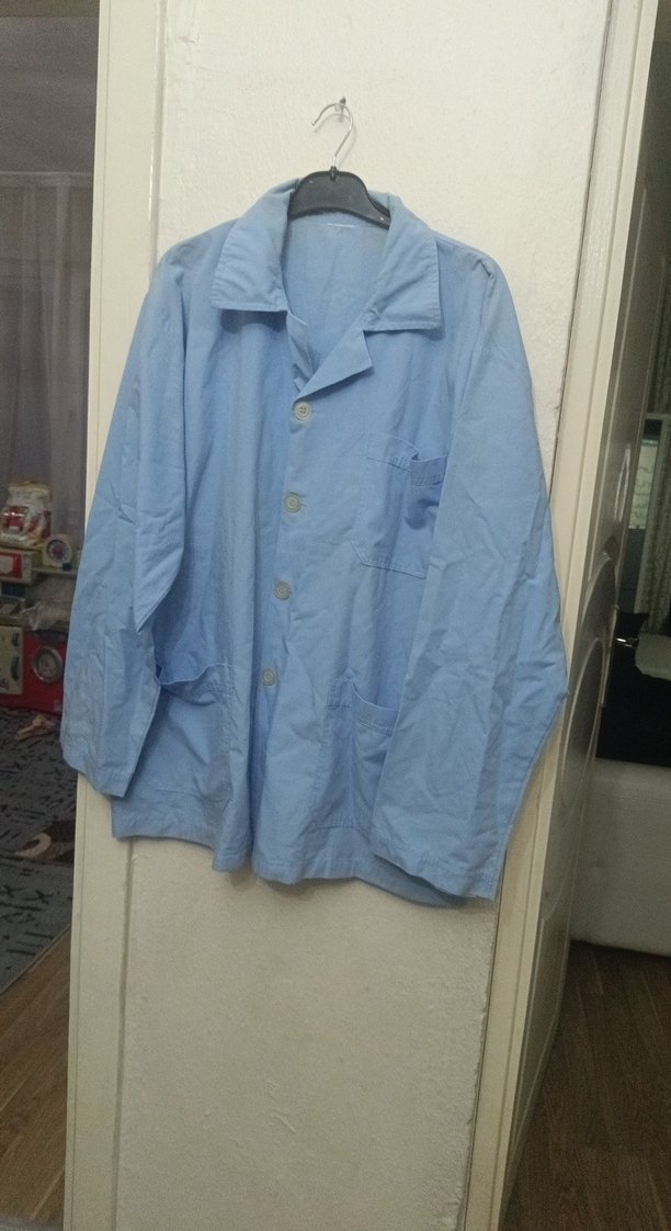Erkekler için pastel mavi, uzun kollu, düğmeli ve klasik yakalı rahat kesim pijama üstü. Normal midi boyda, konforlu kullanım sağlar.