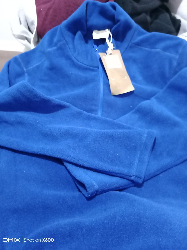 Erkekler için parlak mavi renkte, uzun kollu ve yuvarlak yaka, yumuşak polar kumaştan yapılmış sweatshirt