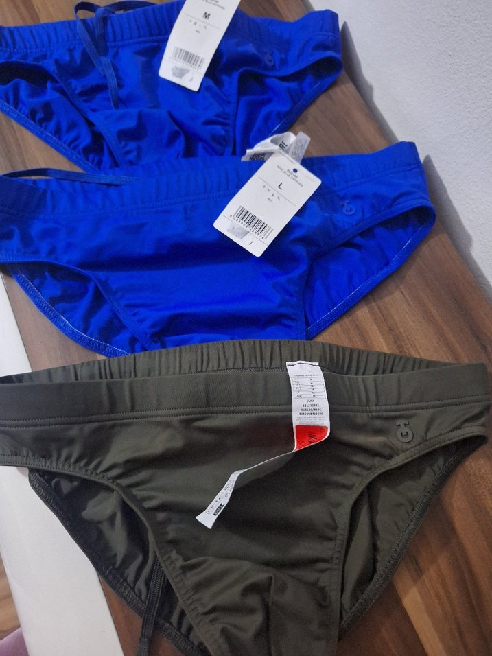 Erkekler için elastik bel bantlı, lacivert ve haki renklerde, normal boyda, desen içermeyen şık mayo.